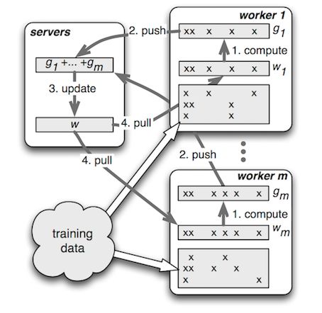 [1] Mu Li, David G. Andersen, Alexander Smola, and Kai Yu. Communication Efficient Distributed Machine Learning with the Parameter Server. NIPS, 2014b.