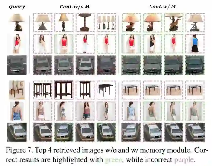 第二,其实 Memory 机制并不是本文原创,但是用 Memory 来做难例挖掘是一个全新的尝试。同样在 CVPR 2020 获得 Oral,也是由 Kaiming He 作为一作的 MoCo 也是这种思路。本文的方法其实可以认为是 MoCo 在 m=0 的特例,Kaiming 通过动量更新 key encoder,可以直接控制住特征偏移。作者认为,这种方法还会在很多任务带来提升,不局限于 Kaiming 的自监督表示学习,以及此前我们一直关注研究的度量学习(或者说监督表示学习)。