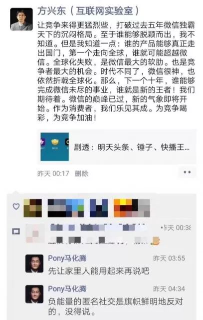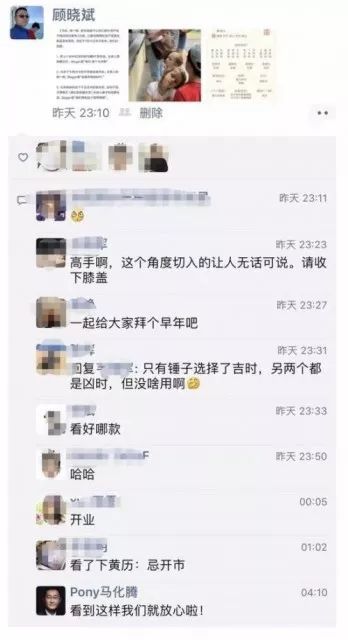 值得一提的是,这不是马化腾第一次对这三家社交应用作出评论。日前,连尚网络高层顾晓斌发布了一条朋友圈,专门为三家社交产品看了当天的黄历,忌开市动土,言下之意并非吉利的日子,马化腾看到后,忍不住留言“看到这样我们就放心啦”。