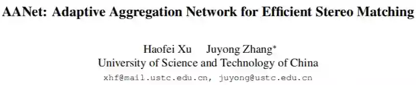 论文标题: AANet: Adaptive Aggregation Network for Efficient Stereo Matching
