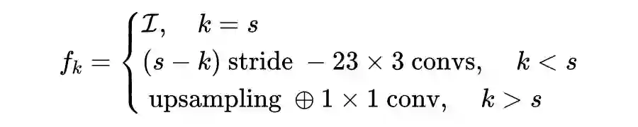 表示双线性上采样到相同分辨率,之后接 1×1 卷积对齐特征通道。