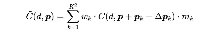 传统的局部代价聚合不能处理视差不连续的情况,容易造成物体边缘和细微结构的粗大边缘问题(edge-fattening)。尽管基于深度学习的方法能够自动地学习权重 w,但是它们也还是采用固定窗口的规则卷积,并不能自适应地进行特征采样。