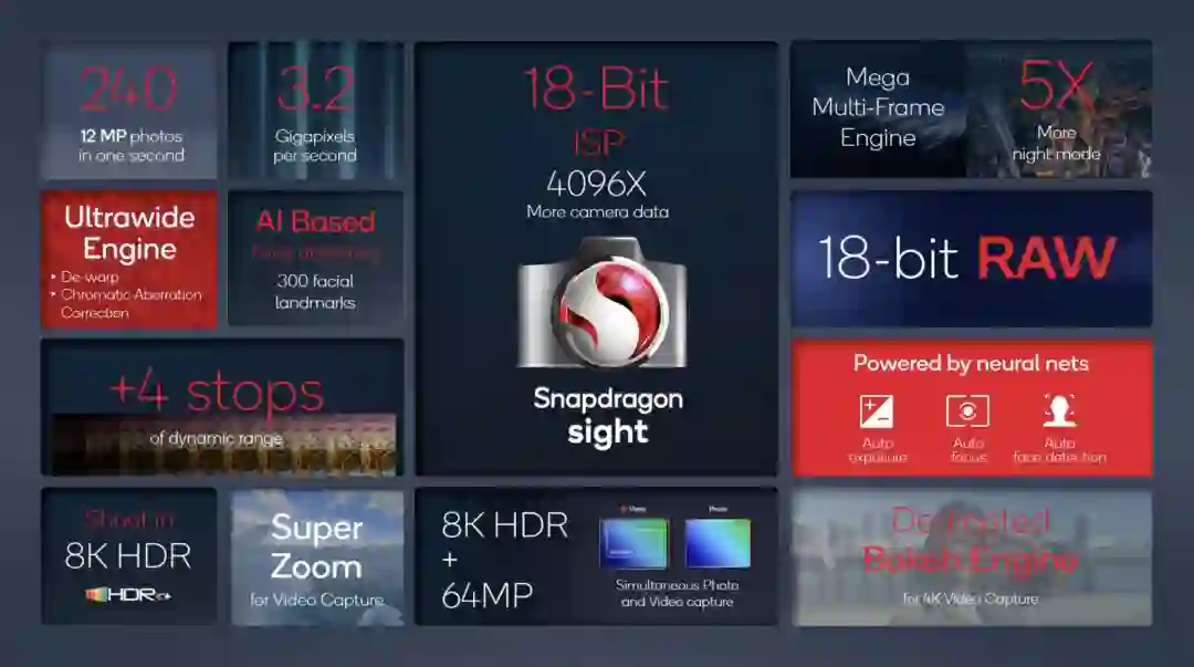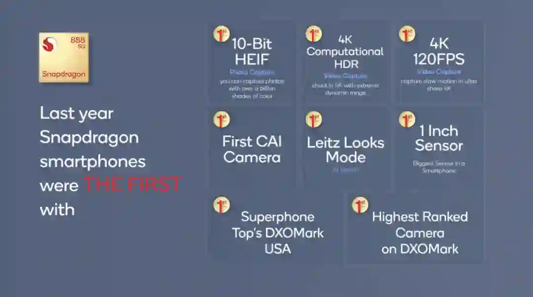 ISP方面,去年的高通骁龙888就拿下8个世界第一,支持10bit HEIF和4K HDR拍摄。