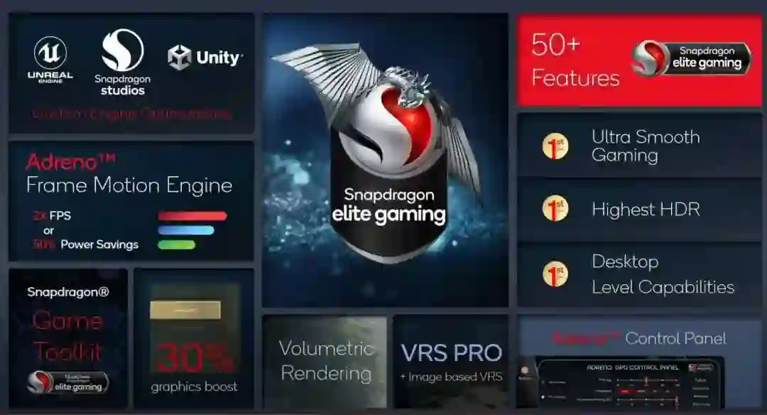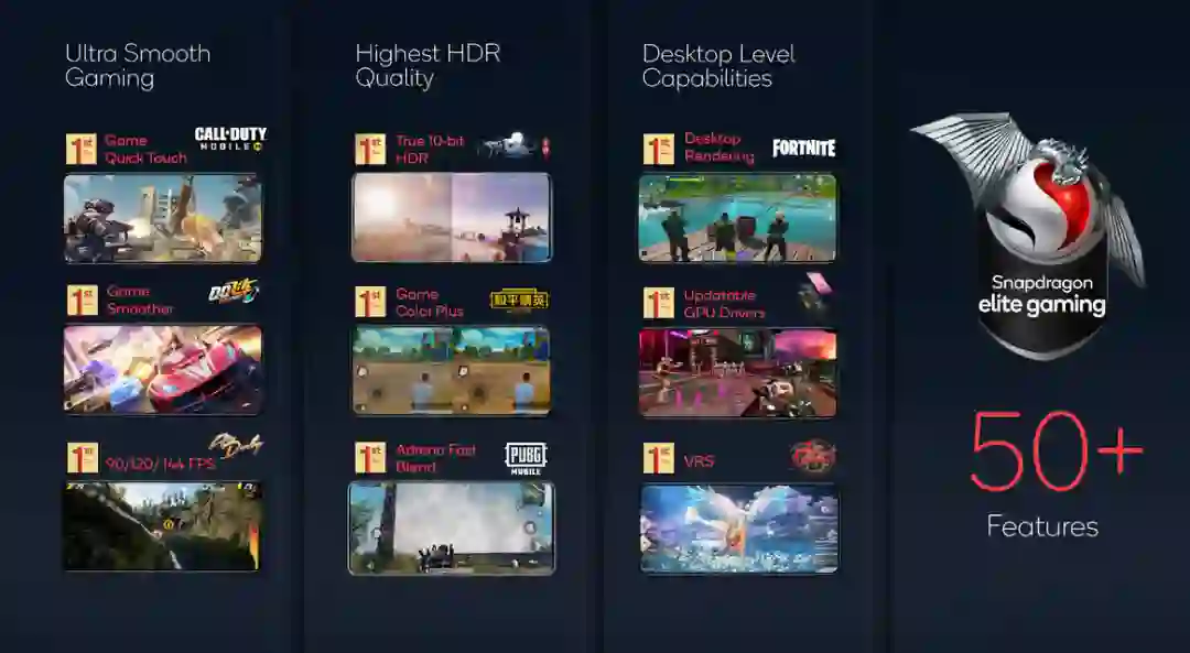 Adreno GPU搭配Snapdragon elite gaming可带来50多种极佳的游戏增强体验,身临其境不再是空谈。
