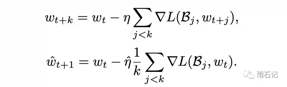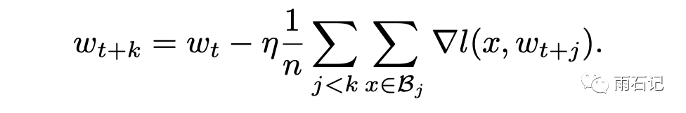 其理论基础如下,如果k个mini-batch一步一步进行训练的话,那么得到的梯度更新公式如下: