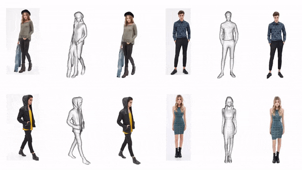 1、从单眼视频中实时生成3D全身视频,可以在各种姿势和服装类型下构造出完全纹理的衣服,而不受拓扑约束。