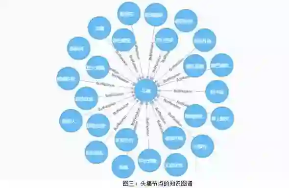 当每个疾病节点都与它所属的症状或一些并发症进行了关联之后,相互之间难免出现交叉。以图二所示举例,偏头痛会导致一系列症状与并发症,这种关系以箭头指向表示,偏头痛指向丛集性头痛,丛集性头痛又指向症状词头痛,偏头痛也指向了头痛,各种复杂的疾病、症状关系正是通过这种复杂的指向关系(也就是知识图谱),进行了清晰的展示。