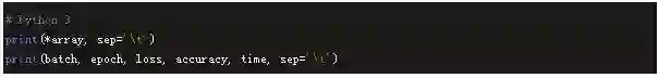 print('{batch:3} {epoch:3} / {total_epochs:3} accuracy: {acc_mean:0.4f}±{acc_std:0.4f} time: {avg_time:3.2f}'.format(