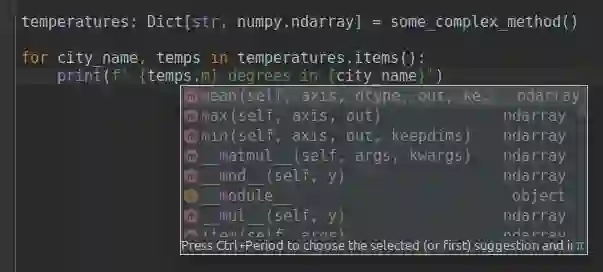 在使用 Java、C# 等语言编程的过程中最令人享受的事情是 IDE 可以提供非常好的建议,因为在执行代码之前,所有标识符的类型都是已知的。