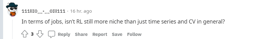 「就找工作来说的话,强化学习不是比time series和CV更小众吗?」