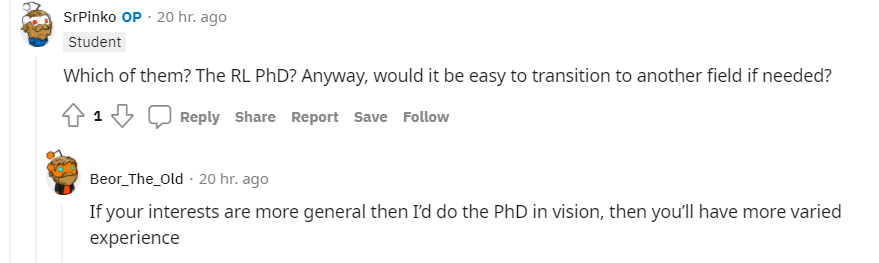 https://www.reddit.com/r/MachineLearning/comments/sxpo89/d_advice_on_career_paths_after_a_phd_in_rl/