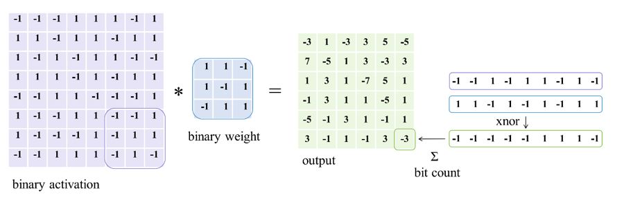 深度卷积神经网络(CNN)由于精度高在视觉任务中已经有非常广泛的应用,但是 CNN 的模型过大限制了它在很多移动端的部署。模型压缩也因此变得尤为重要。在模型压缩方法中,将网络中的权重和激活都只用+1 或者-1 来表示将可以达到理论上的 32 倍的存储空间的节省和 64 倍的加速效应。由于它的权重和激活都只需要用 1bit 表示,因此极其有利于硬件上的部署和实现。