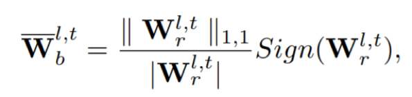 但是这样的更新方式的实质是,将对于二值化参数求得的导数值加在存储的实数值。而在将导数二值化的时候,sign 函数其实只考虑了所存储的实数参数的符号,而没有考虑存储使出参数的量级,由于一些训练上的考虑,实数值网络内部的参数值,往往集中在 0 附近,而直接把它二值化到+1 或者-1,会导致网络计算导数值所参考的参数和网络实际更新的参数有很大差距,使得网络难于收敛到较高精度。