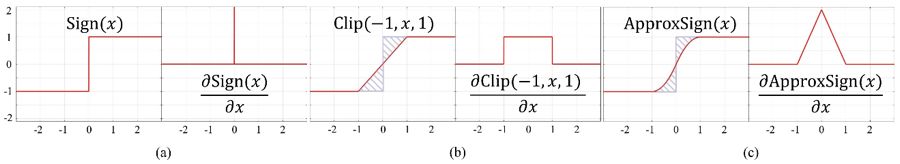 2. 除此之外,我们分析了原有的二值化网络的训练方法,发现原有训练方法在对于激活值的求导和对于参数的更新存在导数不匹配的问题。我们针对激活值的求导和参数更新问题分别提出了解决方案。