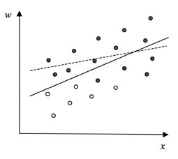 首先,估计出不同教育水平的人,参加工作的概率各有多大,这可以通过经验数据模型得到。然后,删去不工作之人的样本,将余留的样本点依其工作概率的不同,垂直往下位移。工作概率愈小,向下位移愈大;工作概率愈大,向下位移愈小。工作概率百分之百的,不作位移。然后,对位移后的样本点,求出其回归线(上图)。