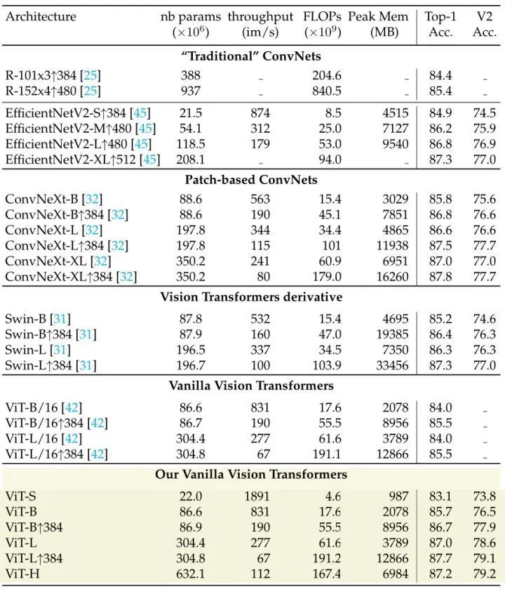 当前 ViT 的训练方法主要来自这两个工作:DeiT [2]和 How to Train Your ViT[3]。相反,许多工作着重于设计一些更加高效的 Attention,或者是在架构中加入卷积和金字塔式结构。这些新的设计,虽然对某些任务特别有效,但是却不太通用。