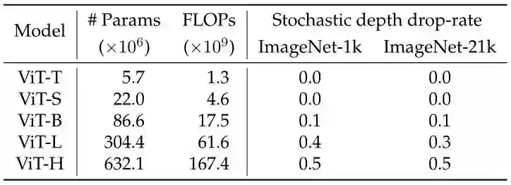 当在 ImageNet-21K 上进行预训练时,默认在分辨率 224×224 上进行 90 Epoch 的预训练,然后在 ImageNet-1K 上进行 50 Epoch 的微调。在这种情况下,作者考虑两种微调分辨率:224×224 和 384×384。