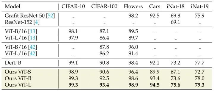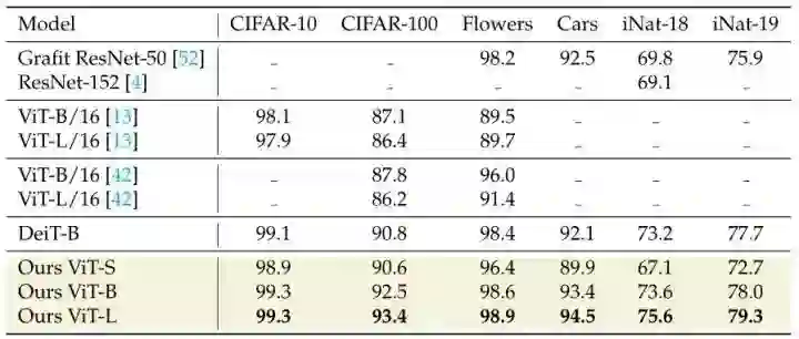 本部分实验只关注在 ImageNet-1K 上以 224×224 的分辨率进行400个 Epoch 预训练的 ViT 模型的性能,实验结果如图14所示。本文所提方法在多个模型上也有性能提升。
