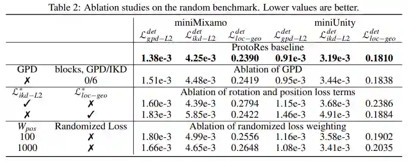 ProtoRes 在用户输入上采用位置(3D 坐标)、旋转(6D 表征)和观察(look-at:3D 目标位置和 3D 局部朝向)效应器。