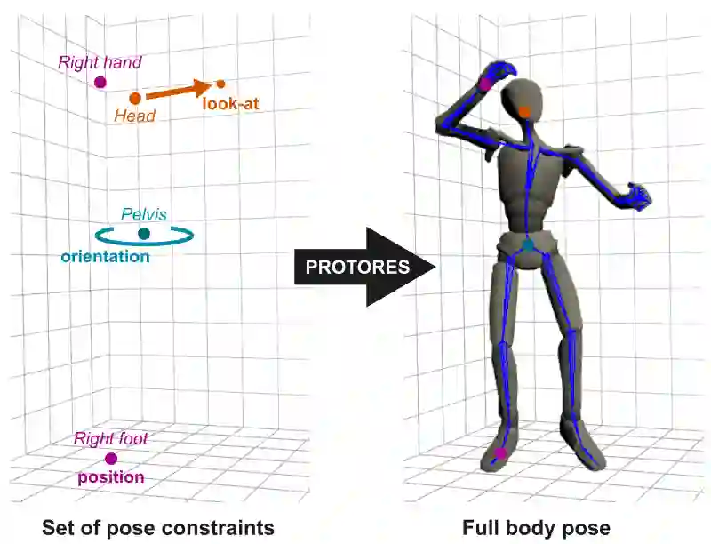 操纵位置效应器控制和限制某些关节的位置。在每次更新时,ProtoRes 从当前效应器状态生成一个全身姿态: