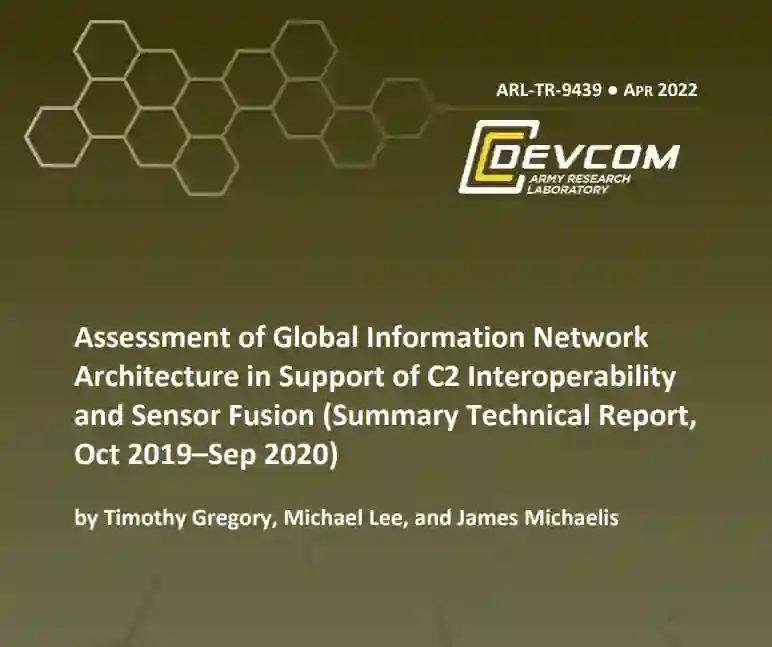 便捷下载,请关注专知人工智能公众号(点击上方蓝色专知关注) 后台回复“GINA” 就可以获取《美国陆军研究实验室《支持C2互操作性和传感器融合的全球信息网络架构评估》2022年技术总结报告》专知下载链接