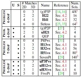 3. 提出了九种新颖的混合相机位姿求解器。