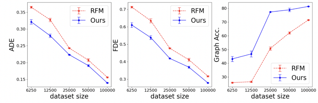 另外,下图显示相比最优基线方法 (RFM), IMMA 需要更少的训练数据就可以得到更好的结果。