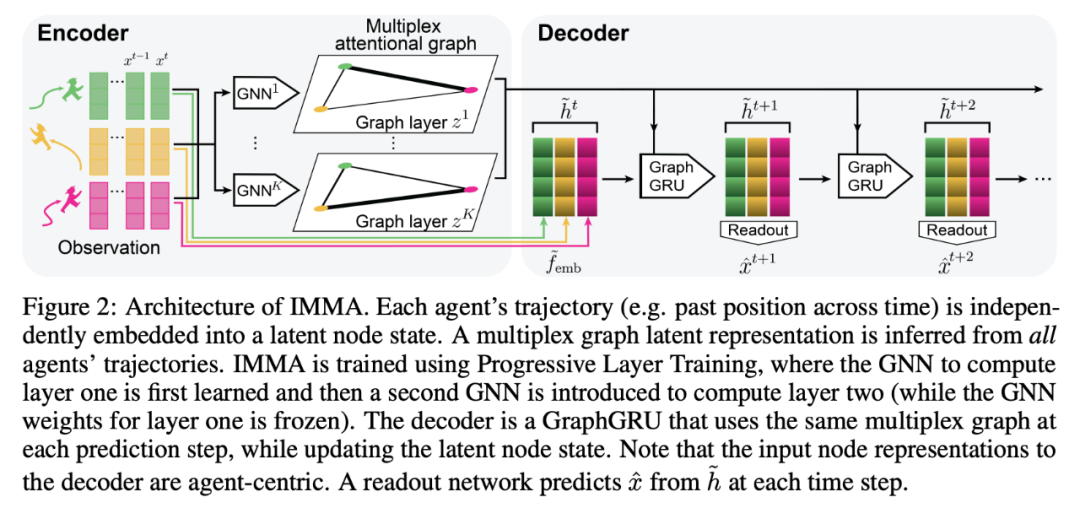 来自斯坦福的研究者提出了 IMMA,一种利用隐空间多层图 (multiplex latent graphs) 来表征多种独立的交互类型,并使用一种新型的多层图注意力机制 (multiplex attention mechanism) 来描述个体间交互强度的行为及轨迹预测模型。该方法不仅大幅提升了预测的准确度,同时也具有很强的可解释性 (interpretability) 和泛化能力 (zero-shot generalizability)。