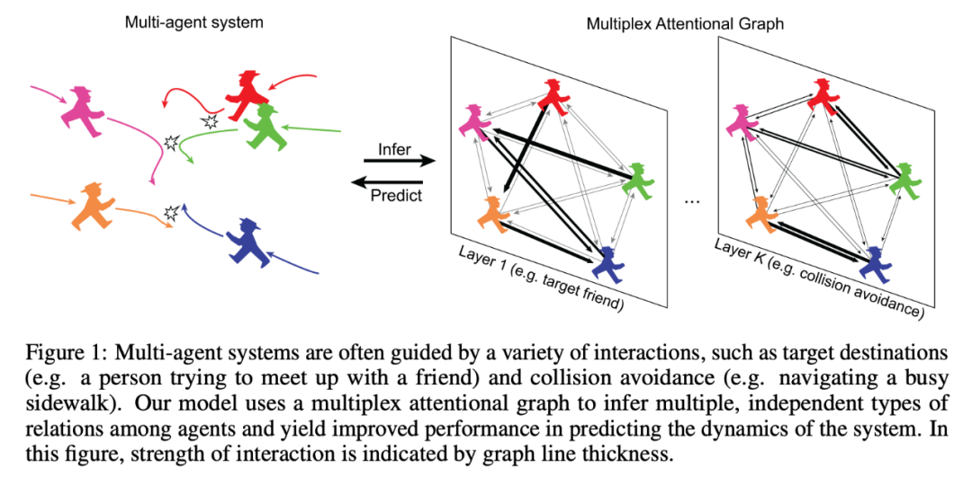 由于存在潜在的多层社会交互 (social interactions) 关系,多智能体系统 (multi-agent systems) 的动力学 (dynamics) 通常很复杂。智能体 (agent) 的行为可能会受到与其他每个智能体多种独立关系类型的影响,例如在物理系统中通常不存在的复杂属性 (意向性或合作关系)。