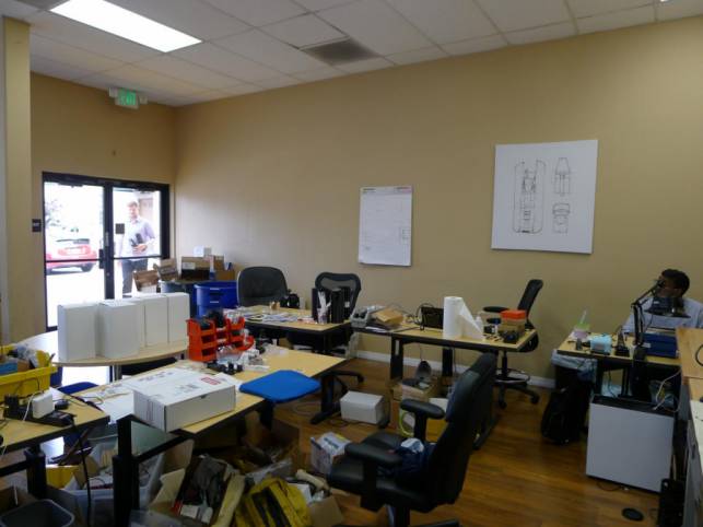 图丨 Athelas 的办公室墙上挂着一张硬件设备的手绘设计图(图片来源:DT 君)