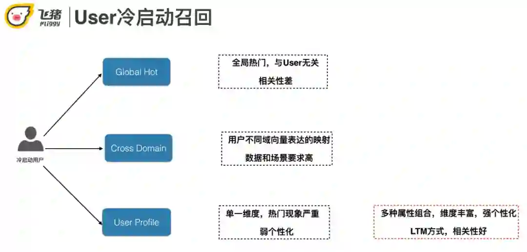 冷启动:航旅商品的热门现象严重,user profile缺乏。