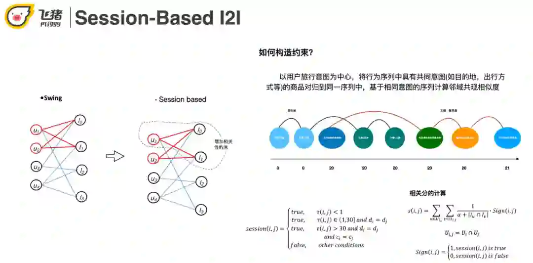 相关性vs搭配性:航旅场景下要求搭配性比较高,传统的I2I只偏重相关性。但用户的行程需求不是单点的,比如买了飞机票还要看住宿。行程受上下文影响比较多,比如季节、用户近期行为等。