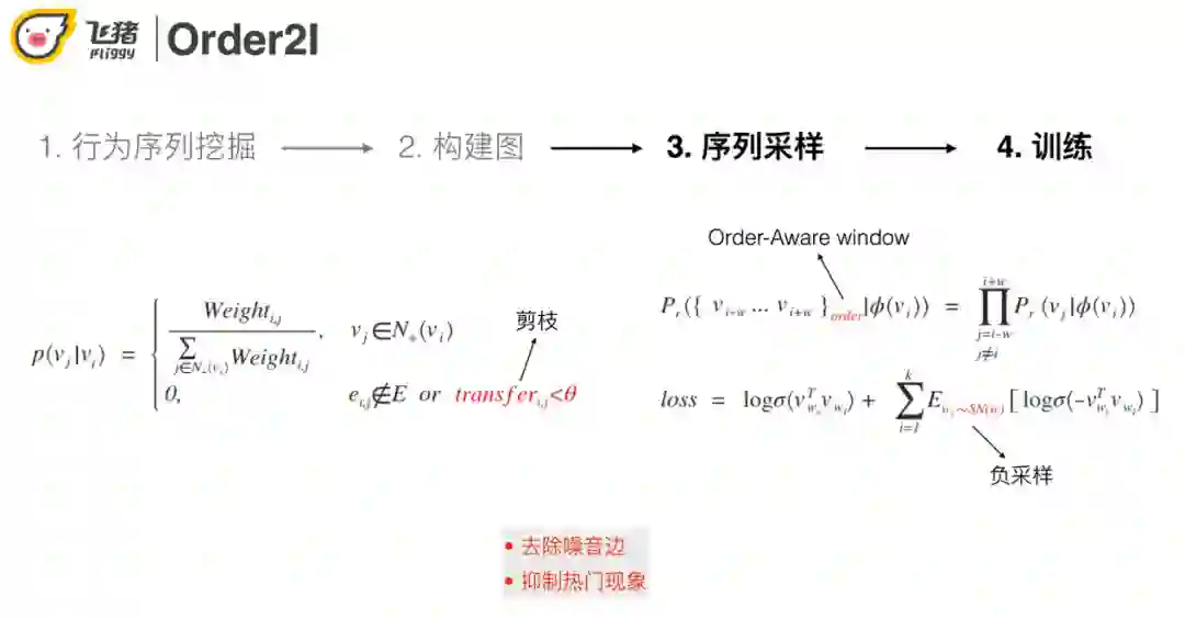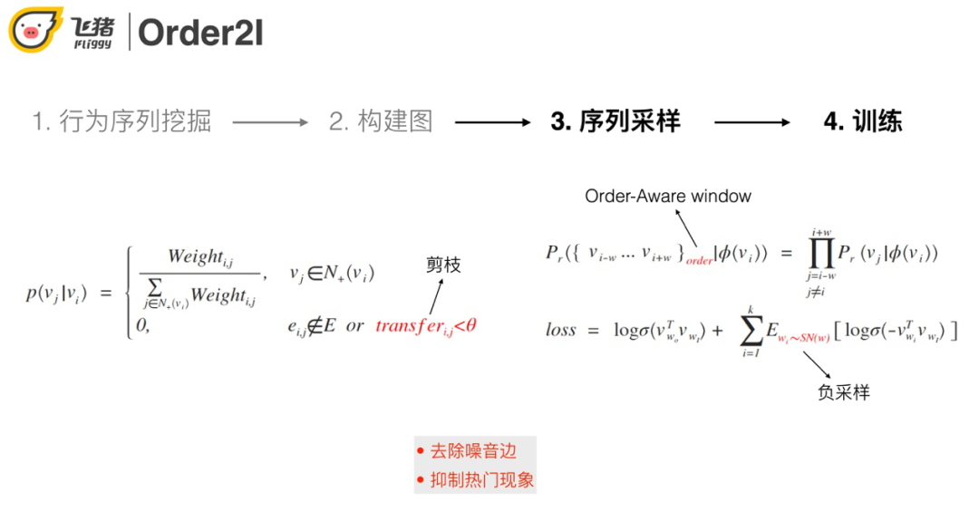 ③ 序列采样过程中会基于转移概率进行剪枝操作,用来抑制噪声和缓解热门问题。