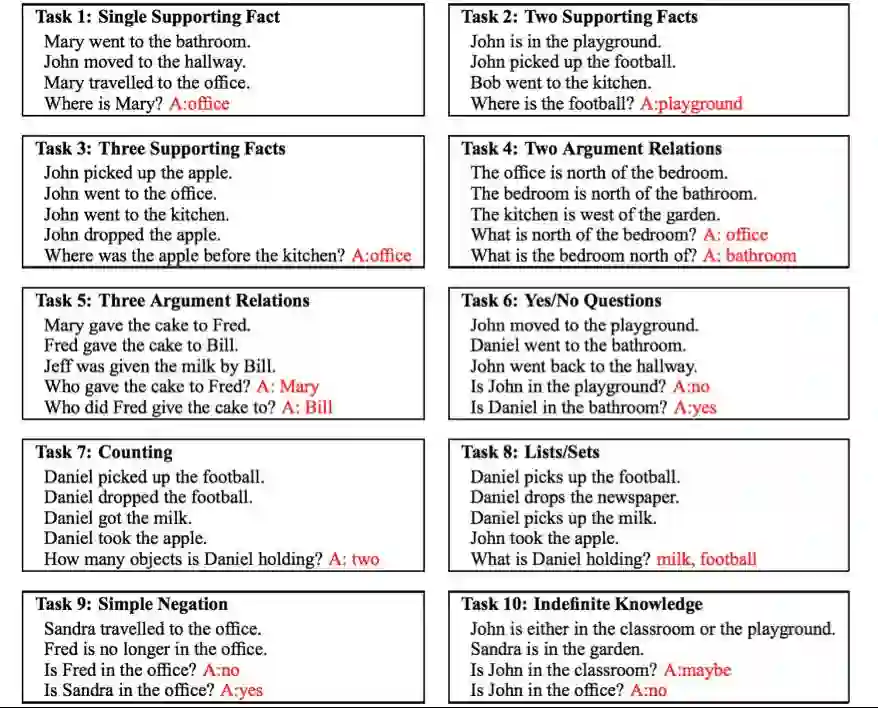 [1]Weston et al. 2015. Towards AI-Complete Question Answering: A Set ofPrerequisite Toy Tasks