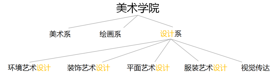 在大多数人的理解中,很多人理解的设计是基于表现层的,将一个东西的外观变得好看。我们可以看一下某大学的设计类专业设置情况,如下图: