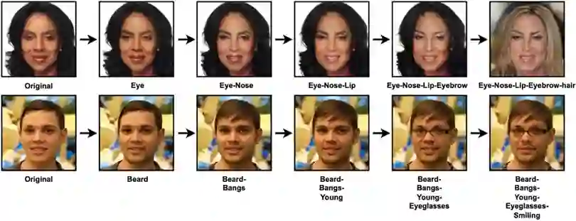 对于数据集中的一张人脸图片,我们可以通过长度1~5的不同序列进行篡改。为了更全面的研究此问题,本文考虑了两种不同的篡改方法,即人脸部件序列篡改(sequential facial components manipulation)[1] 和人脸属性序列篡改 (sequential facial attributes manipulation) [2] 。