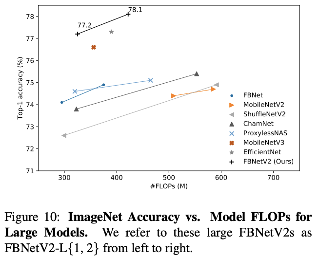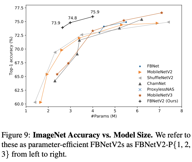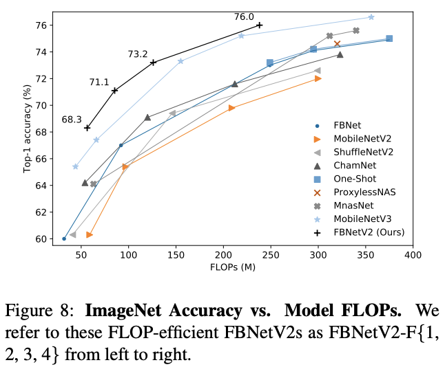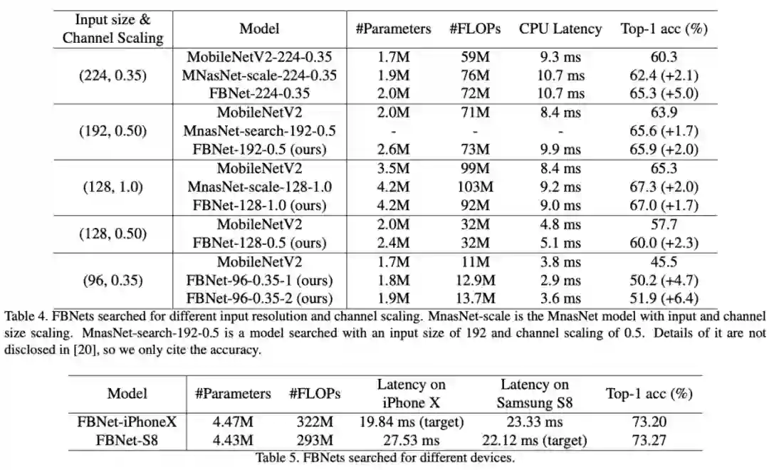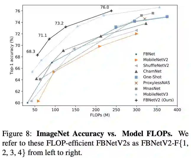 搜索得到的多个FBNetV2网络,每个网络都对应不同的资源需求。
