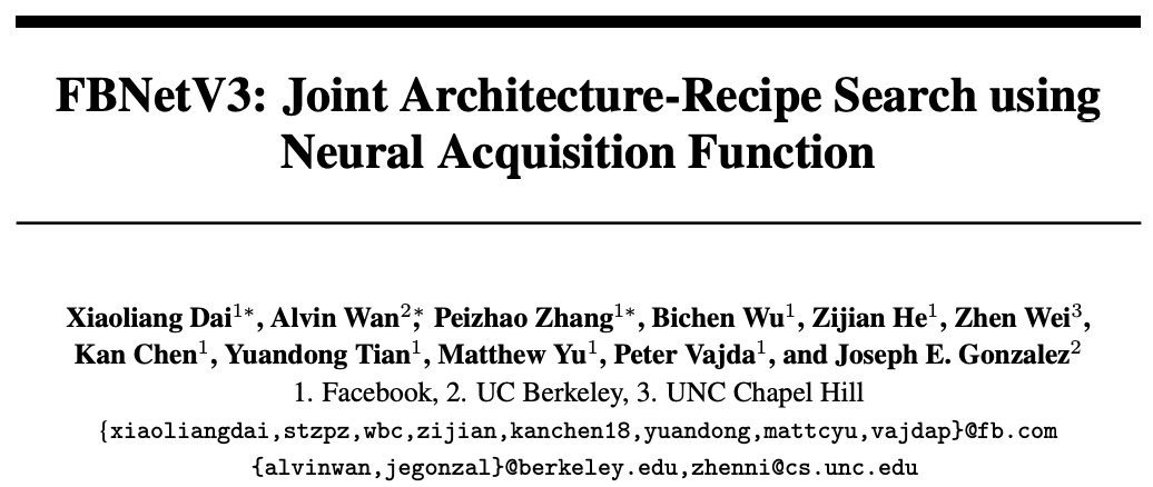 论文: FBNetV3: Joint Architecture-Recipe Search using Neural Acquisition Function