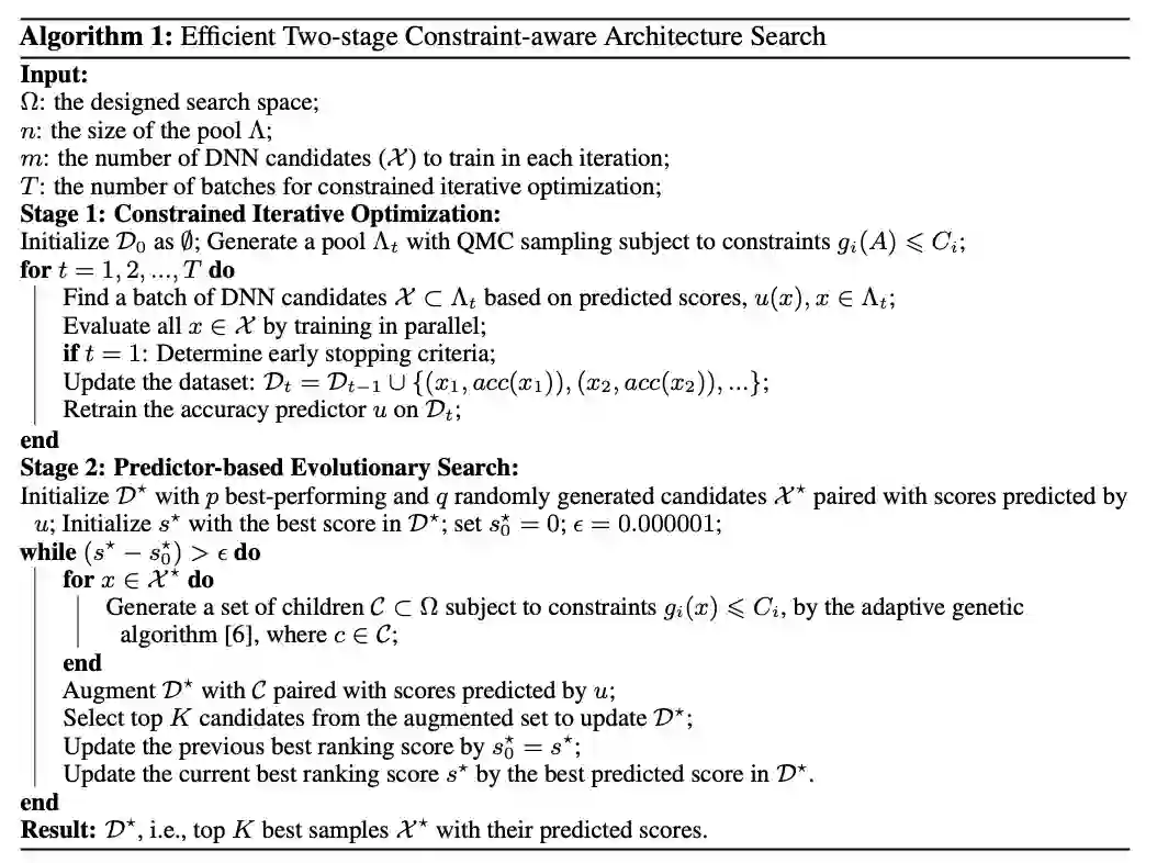 首先使用拟蒙特卡罗从搜索空间采样网络结构-超参数对,然后迭代地训练预测器: