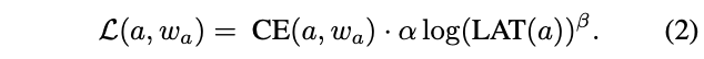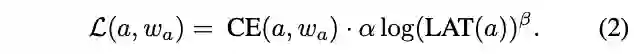 公式1中的损失函数不仅要反映准确率,也要反应目标硬件上的时延。因此,定义以下损失函数: