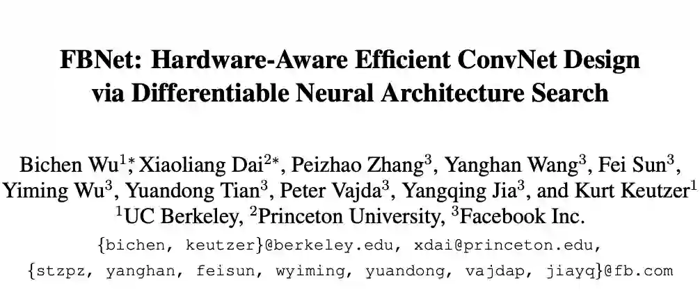 论文: FBNet: Hardware-Aware Efficient ConvNet Design via Differentiable Neural Architecture Search | CVPR 2019