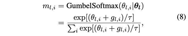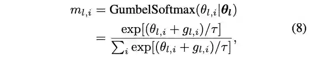 这样,权值 是可导的,但 仍然不可导,因为 的定义是离散的,为此将 的生成方法转换为Gumbel Softmax: