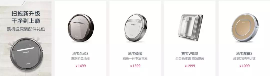 相比市面大多4k+的扫地机器人,科沃斯“地宝”扫地机器人的价格区间大致在1k-2k。今年推出的爆款扫地机器人DD35,在清洁能力和效率上有了较大提升。