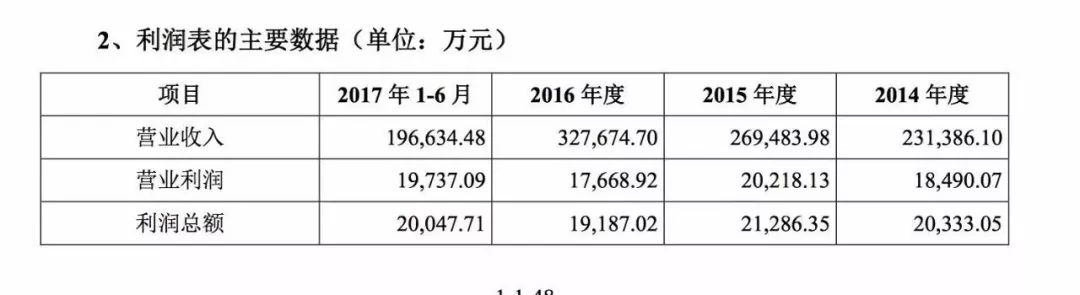 招股书显示,2014年、2015年、2016年、2017年1-6月,公司营业收入分别约为23.14亿、26.95亿、32.77亿、19.66亿,营业利润和利润总额方面,虽然2016年度较2015年度有所降低,但2017年上半年的数字就已超过2016年度全年。