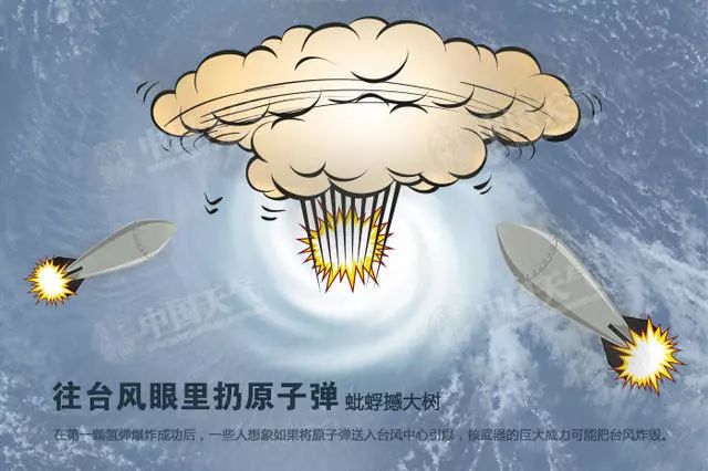 在第一颗氢弹爆炸成功后,核武器的巨大威力,又燃起了一些人征服台风的希望。他们想象如果将原子弹送入台风中心引爆,将可能把台风炸毁。
