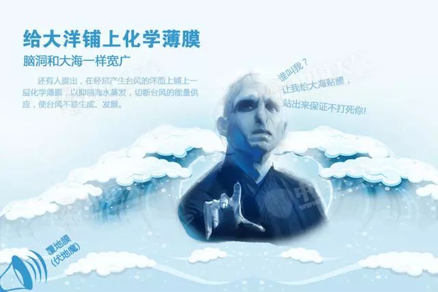 还有人提出,在经常产生台风的洋面上铺上一层化学薄膜,以抑制海水蒸发,切断台风的能量供应,使台风不易生成、发展。
