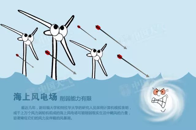 不过,在风电场下游几十公里处,风速就基本恢复到之前的水平了。并且,台风是立体的,从地面到对流层顶,高达万米,而风电机组也就是地面十几米到几十米。台风通过内部的对流,将动量下传,很容易把大风速向下传导。所以在沿海地区,利用台风的风力发电,这个显然是趋利避害的手段,但是削减台风强度,还是很难的。