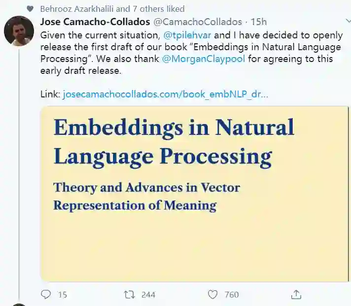 后台回复“ENLP” 就可以获取《【新书】自然语言处理嵌入:语义向量表示理论与进展,从Word2Vec到BERT,163页pdf》新书专知下载链接