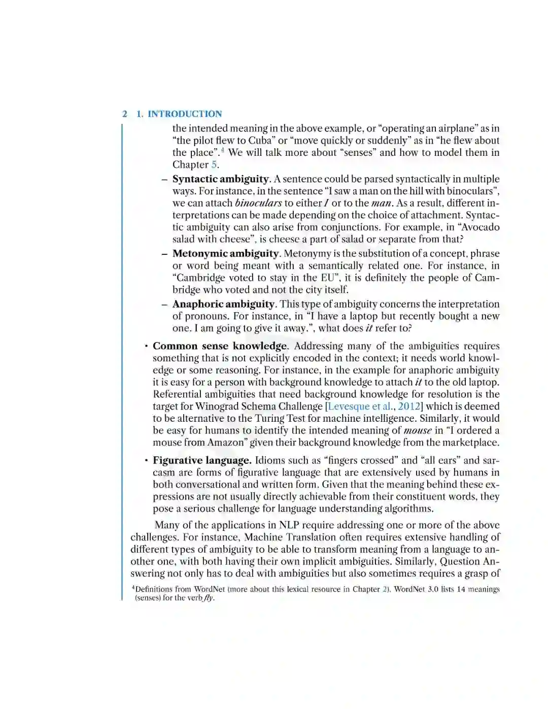 在第二章,我们提供了一些基本的NLP和机器学习应用于语言问题的背景知识。然后,简要介绍了词汇语义中常用的一些主要的知识资源。