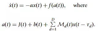 这里x(t)表示神经元在时间t的状态;f是一个非线性函数,其参数a(t)结合了数据信号J(t)、时间变化的偏置b(t)以及由函数Md(t)调制的延时反馈信号x(t -τd)。可以明确考虑不同延迟长度τd的多个环路。由于反馈环路,系统成了一个所谓的延迟动力系统。